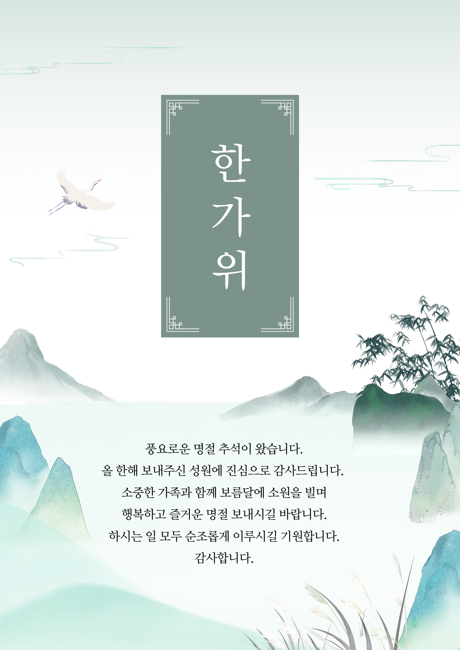 "추석 명절, 귀사에 건강과 행복이 가득하길 기원합니다."