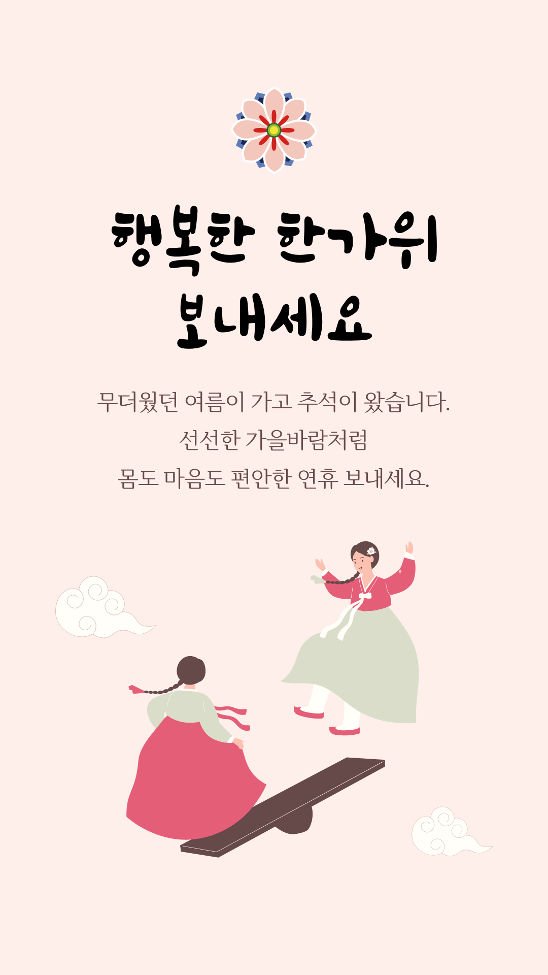 "풍성한 한가위 되세요! 가족과 함께 행복한 시간 보내길 바랍니다."